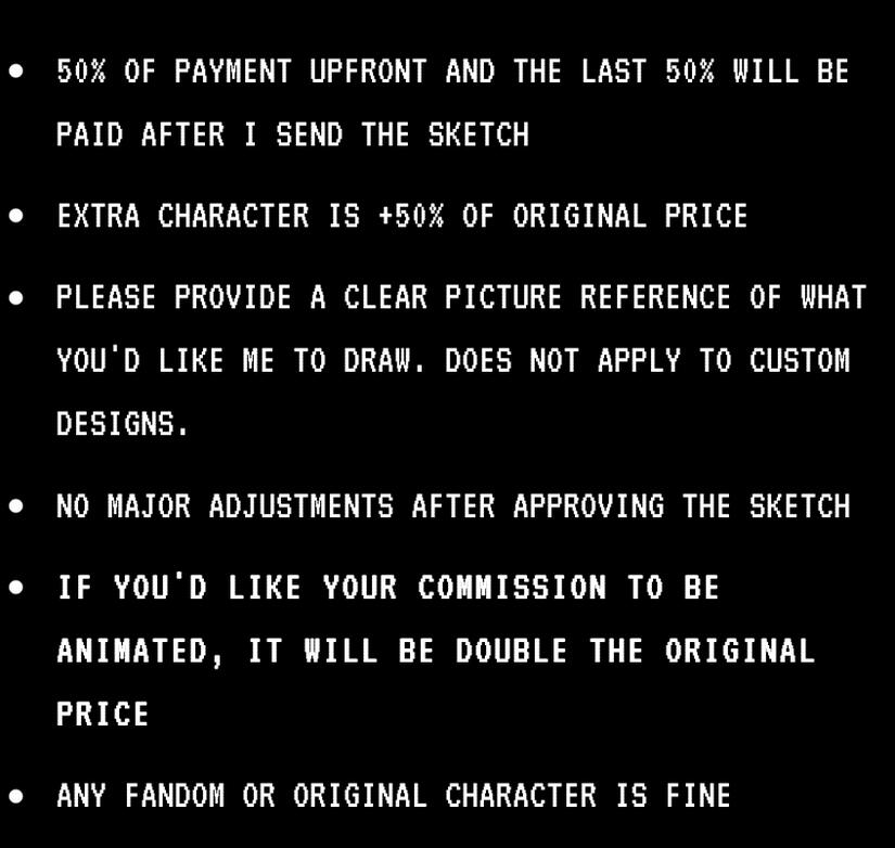 If you’d like to commission me, please email me at [email protected] or DM me on twitter (Twitter is preferable)